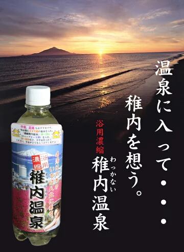 ①本品は「稚内温泉(源泉名:稚内ノシャップ温泉1号)」の天然のままの源泉を、新開発の温泉濃縮装置で高度に濃縮したものです。